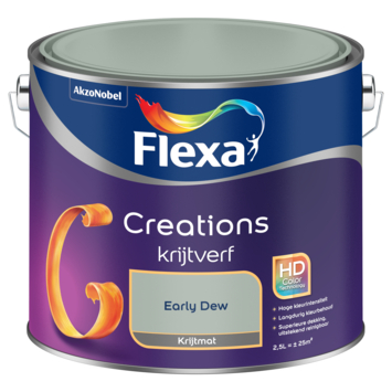 Geef je interieur een nieuwe impuls met Flexa Creations. Flexa Creations muurverf early dew krijt is watergedragen en dekt optimaal. Doordat de verf zeer goed reinigbaar en schrobvast met kleurbehoud is, is de muurverf ideaal voor ruimten die gemakkelijk vochtig of vuil worden, zoals de badkamer, kinderkamer of keuken. De HD color technology zorgt voor diepe intense kleuren. De unieke formulering vermindert vervaging van kleurpigmenten door UV-licht. Je kunt zo extra lang genieten van jouw Flexa Creations kleurkeuze. Naast de standaard beschikbare kleuren is deze verf verschillende kleuren te verkrijgen bij de verfmengbalie in de KARWEI bouwmarkt. Flexa Creations: een prachtige manier om jouw wereld te personaliseren met kleur! De inhoudsmaat is 2,5 liter.