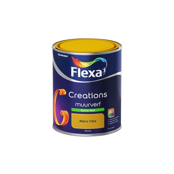 Flexa Creations muurverf extra mat retro vibe 1 l is een superieure kwaliteit muurverf voor muren en plafonds binnenshuis. Doordat de verf goed reinigbaar en schrobvast is, is ze uitermate geschikt voor ruimten die gemakkelijk vochtig of vuil worden, zoals bijvoorbeeld de badkamer, kinderkamer of keuken. Je kan zo langdurig genieten van je mooie matte muren. Met de unieke en speciaal ontworpen kleuren van Flexa Creations kun je kleur geven aan je verbeelding. Waarom je complete inrichting niet eens helemaal omgooien? Kleur is immers de leukste en sterkste manier om je interieur te veranderen en met de Flexa Creations collectie is het heel eenvoudig. Ga de strijd aan met doorsnee muren en geef ze een verrassende, nieuwe kleur. Iets eigentijds, iets onverwachts, je hele interieur leeft ervan op. Tot slot heeft Flexa Creations extra matte muurverf een uitstekende dekking en is gemakkelijk aan te brengen.