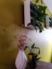 Nadat we de muren zelf hebben gestuct met stucpasta, wilden we uiteraard ook een mooi likje verf op de muur. Ter voorbereiding hebben we alle onvolmaaktheden weggeschuurd met P320 schuurpapier. Een laagje voorstrijk is op maagdelijke muren wel aan te raden. Hiervoor gebruikten we Flexa Strak op de Muur voorstrijk. Daarna brachten we 3 tot 4 lagen Flexa Creations muurverf extra mat retro vibe aan. Deze verf is vrij dik. Hierdoor dekt de verf goed en spat ze niet. Keerzijde van de medaille is dat rolaanzetten snel zichtbaar zijn als je niet oplet of onervaren bent. Na een beetje experimenteren met deze verf bleek dat uiteindelijk makkelijk te vermijden. Bij de laatste laag voeg ik 15 tot 20 % water toe aan de verf waardoor de verf net wat natter blijft en nat in nat schilderen een eitje wordt. Deze laatste laag is uiteraard minder dekkend dan de voorgaande. Om makkelijker te schilderen kan je ook bij de eerdere lagen wat water toevoegen, maar dan houd ik het op 5 tot 10% water. Het uiteindelijke resultaat zie je op de foto. Hoewel smaken uiteraard verschillen, combineert deze kleur wel erg mooi met hout en planten.