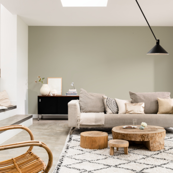 Green Tea is een zachte grijsgroene tint met een warme ondertoon. De kleur zorgt voor een kalme en natuurlijke uitstraling en is zeer geschikt voor ruimtes zoals de slaapkamer, badkamer of werkkamer. Green Tea past goed in Scandinavische, minimalistische en rustieke interieurs en combineert mooi met wit, licht hout en natuurlijke materialen zoals linnen, keramiek of rotan.