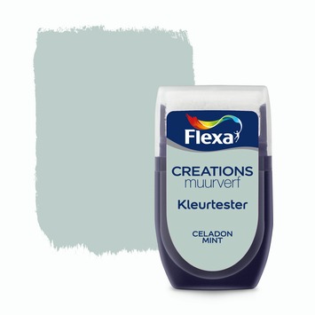 Met de Flexa Creations muurverf kleurtester celadon mint is het eenvoudig om deze kleur thuis te testen op een muur. In de tester zit een kleine vachtroller verwerkt waarmee zonder gebruik van een kwast of roller de verf aan te brengen is. Zo ben je voordat je aan je klus begint, verzekerd van jouw kleurkeuze. De kleurtesters zijn verkrijgbaar in 54 verschillende Flexa Creations kleuren. Bevalt één van de kleuren en koop je een blik Flexa Creations muurverf dan krijgt je bovendien het aankoopbedrag van maximaal 3 kleurtesters terug.
