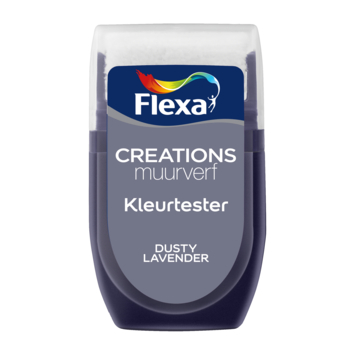 Met de Flexa Creations muurverf kleurtester dusty lavender is het eenvoudig om deze kleur thuis te testen op een muur. In de tester zit een kleine vachtroller verwerkt waarmee zonder gebruik van een kwast of roller de verf aan te brengen is. Zo ben je voordat je aan je klus begint, verzekerd van jouw kleurkeuze. De kleurtesters zijn verkrijgbaar in 54 verschillende Flexa Creations kleuren. Bevalt één van de kleuren en koop je een blik Flexa Creations muurverf dan krijgt je bovendien het aankoopbedrag van maximaal 3 kleurtesters terug.