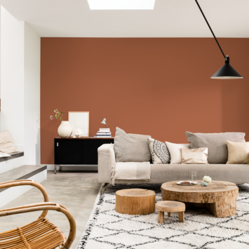 Cotta Love is een warme terracottatint met een aardse en uitnodigende uitstraling die karakter en sfeer toevoegt aan het interieur. Deze kleur is ideaal voor ruimtes zoals de woonkamer, keuken of hal en komt goed tot zijn recht in combinatie met natuurlijke materialen zoals hout, keramiek of linnen. Cotta Love laat zich moeiteloos combineren met neutrale tinten zoals zand, crème en lichtgrijs en past binnen mediterrane, botanische en modern landelijke woonstijlen. De kleur brengt een levendig, warm accent in huis zonder te overheersen.