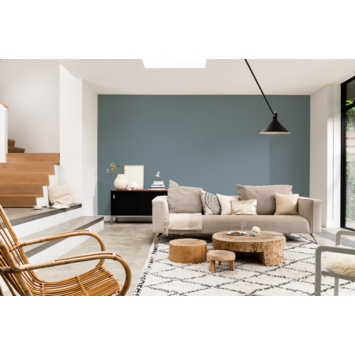 Denim Drift is een gedempte blauwtint met een grijze ondertoon die zorgt voor een ingetogen en veelzijdige uitstraling. Deze kleur vormt een kalme basis in ruimtes zoals de woonkamer, keuken of werkkamer en laat zich goed combineren met lichte houtsoorten, zachte stoffen en neutrale tinten. Denim Drift sluit mooi aan bij kleuren zoals pastelgroen, crème of lichtgrijs en werkt binnen diverse interieurstijlen zoals Scandinavisch, industrieel of modern minimalistisch. De tint brengt balans, diepte en een eigentijdse sfeer in huis.