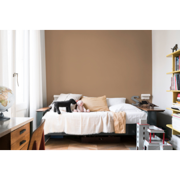 Rich Butterscotch is een warme karameltint met een zachte goudgele ondertoon die direct een gevoel van comfort en warmte oproept. Deze kleur leent zich goed voor gebruik in ruimtes zoals de woonkamer, eetkamer of hal en vormt daar een uitnodigende, sfeervolle basis. Rich Butterscotch combineert mooi met natuurlijke materialen zoals hout, rotan en linnen en laat zich goed aanvullen met warme kleuren zoals terracotta, diepbruin of crème. De tint past uitstekend binnen landelijke, moderne en bohemian interieurs en brengt een warme gloed in het interieur zonder te overheersen.