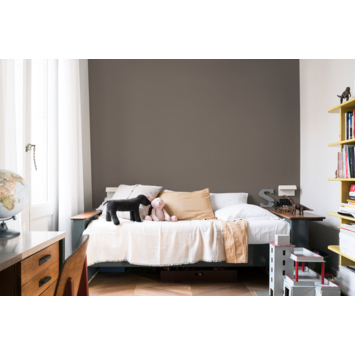 Space Grey is een diepe, koele grijstint met een moderne en krachtige uitstraling. Deze kleur creëert een strak en rustig effect in huis en is zeer geschikt voor woonkamers, thuiskantoren of minimalistisch ingerichte slaapkamers. Space Grey combineert goed met wit, zwart en lichte houtsoorten, en vormt een sterk contrast met warme accenten zoals okergeel of roest. De tint past perfect binnen moderne, industriële en minimalistische interieurstijlen en geeft het interieur een stijlvol, eigentijds karakter.
