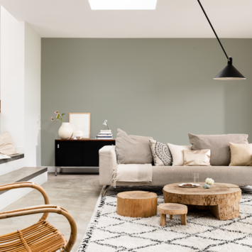 Saliegroen is een zachte groentint met een subtiel grijze ondertoon. De kleur laat zich goed combineren met natuurlijke elementen zoals rotan, linnen en keramiek, en sluit mooi aan bij lichte houtsoorten, wit en zandkleuren. Saliegroen past moeiteloos binnen botanische, Japandi, Scandinavische of modern rustieke interieurs.