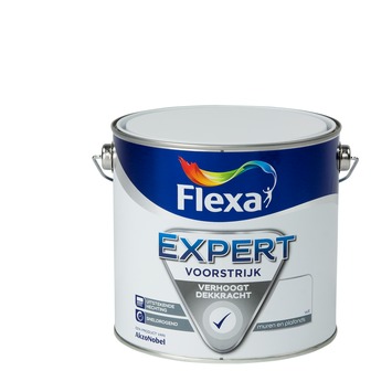 Flexa Expert muurverf voorstrijk wit 2,5 l is een dekkend voorbehandelingsmiddel om zuigende en poederende muren en plafonds binnenshuis vast te zetten. Denk bijvoorbeeld aan baksteen, papierbehang, hard- en zachtboard, gipskarton, schoon metselwerk, cement gebonden vezelplaat en (glad) pleisterwerk. Door het gebruik van de voorstrijk krijg je een betere dekkracht en kan je de toplaag egaal op de muur krijgen. Uiteindelijk zorgt dat voor een mooi, strak eindresultaat.