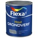Flexa hout grondverf grijs 750 ml is een matte, vullende grondverf voor binnen en buiten. Het is de basis grondverf voor het verder aflakken met terpentineverdunbare dekkende Flexa lakken. Flexa grondverf is vochtregulerend waardoor onder andere bladdervorming en houtrot wordt voorkomen. Het is goed vullend waardoor er een mooie egale laag ontstaat om verder af te lakken. Je kunt houtwerk in twee lagen Flexa grondverf, één jaar onafgewerkt over laten staan. Dat betekent dat je voor de winter kale plekken in het schilderwerk twee keer ter bescherming kunt bijwerken om het vervolgens in de zomer af te lakken. Deze Flexa grondverf is verpakt in een handige, kleine verpakking, wat erg praktisch is als je maar weinig nodig hebt.