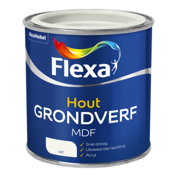 Flexa hout mdf grondverf wit 250 ml is een vullende en sneldrogende grondverf voor binnen en buiten op MDF (Medium Density Fiberboard). De Flexa grondverf voor MDF is een grondverf op waterbasis die je niet alleen kunt gebruiken op MDF maar ook op HDF (High Density Fiberboard) en dekkende verf- of beitslagen. Flexa grondverf voor MDF droogt zeer snel waardoor je weinig last hebt van inwaaiend stof en je meerdere lagen op één dag kunt aanbrengen. Flexa grondverf voor MDF is goed vullend en vochtregulerend waardoor je een mooie egale grondlaag krijgt die niet gevoelig is voor bladdervorming en houtrot.