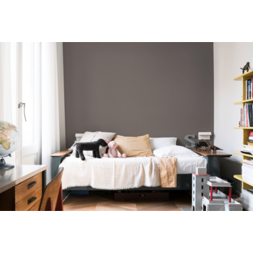 Leisteengrijs is een diepe grijstint met een koele antracietachtige ondertoon. De kleur combineert goed met lichte tinten zoals wit, zand of lichtgrijs en sluit mooi aan bij materialen als beton, metaal of donker hout. Leisteengrijs komt goed tot zijn recht in industriële, moderne en minimalistische interieurs en werkt zowel op accentvlakken als op grotere oppervlakken in woonruimtes of werkplekken.