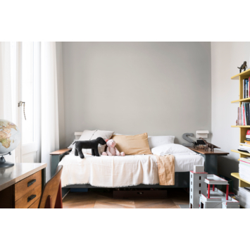 Wolkenwit is een frisse, lichte wittint met een koele ondertoon. Deze kleur zorgt voor een open en helder effect in de ruimte en is zeer geschikt om licht te brengen in kleinere of minder goed verlichte kamers. Wolkenwit laat zich goed combineren met neutrale grijstinten, koelblauw en licht hout en sluit mooi aan bij moderne, Scandinavische en minimalistische interieurs.