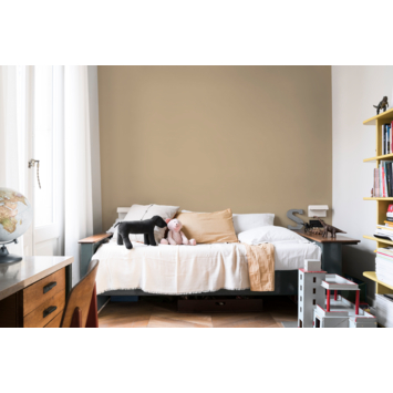 Hazelbruin is een warme bruintint met een neutrale ondertoon. De kleur combineert goed met wit, beige en lichte houtsoorten en sluit mooi aan bij een natuurlijk kleurenpalet. Hazelbruin is geschikt voor verschillende ruimtes zoals de woonkamer, hal of werkkamer en biedt een rustige basis die eenvoudig te combineren is met andere tinten of materialen.