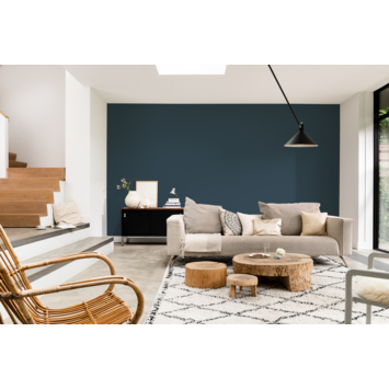 Nachtblauw is een diepe blauwtint met een donkere, koele ondertoon. De kleur combineert goed met wit, zachtgrijs en houtsoorten met een lichte of neutrale afwerking. Nachtblauw is geschikt voor woonkamers, slaapkamers of werkkamers en biedt een krachtig kleuraccent zonder druk te worden. Deze tint komt goed tot zijn recht op grote oppervlakken of in combinatie met rustige basiskleuren en zorgt voor diepte en karakter in het interieur.