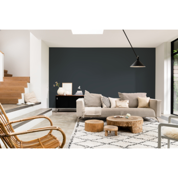 Grafietblauw is een diepe blauwtint met een grijze ondertoon. De kleur combineert goed met lichte neutrale tinten zoals wit, beige en lichtgrijs. Grafietblauw past in verschillende woonstijlen, van modern tot industrieel, en is geschikt voor gebruik in ruimtes zoals de woonkamer, werkkamer of hal. De tint zorgt voor contrast zonder overheersend te zijn.