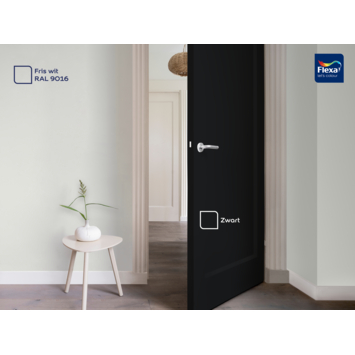 Zwart is een diepe en krachtige kleur die een stijlvol accent aanbrengt op binnendeuren, meubels of kozijnen. De kleur combineert goed met lichte tinten, hout of metaal en past perfect binnen moderne, industriële of minimalistische interieurs. Zwart voegt contrast toe en geeft de ruimte een rustige maar karaktervolle uitstraling.