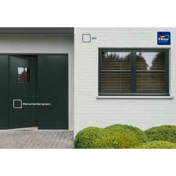 Monumentengroen is een klassieke donkergroene tint met een koele ondertoon. De kleur wordt veel gebruikt op gevelkozijnen en deuren van karakteristieke panden en sluit mooi aan bij traditionele bouwstijlen. Monumentengroen combineert goed met wit, gebroken wit of natuursteen en geeft buitenoppervlakken een ingetogen en tijdloos karakter. Deze tint is geschikt voor wie een stijlvolle en authentieke uitstraling wil behouden of terugbrengen.