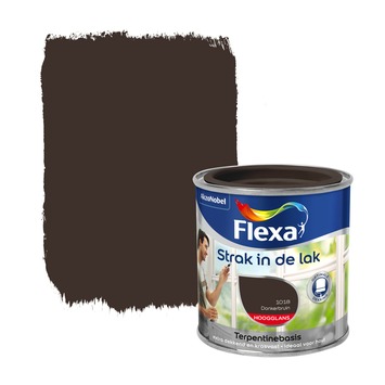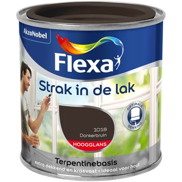 Flexa Strak in de Lak hoogglans donker bruin 250 ml is een hoogglans aflak op terpentinebasis die je zowel binnen als buiten kunt gebruiken. Je kunt het met de kwast of met de roller aanbrengen op onder andere deuren en kozijnen. Door de extra dekking en goede vloeiing bereik je met Flexa Strak in de Lak eenvoudig en snel een mooi en strak eindresultaat. Flexa Strak in de Lak is krasvast en vergeelt bijna niet. Daardoor maak je met Flexa Strak in de Lak duurzaam en mooi schilderwerk.