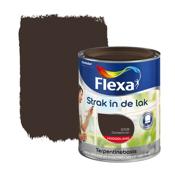 Flexa Strak in de Lak hoogglans donkerbruin 750 ml is een hoogglans aflak op terpentinebasis die je zowel binnen als buiten kunt gebruiken. Je kunt het met de kwast of met de roller aanbrengen op onder andere deuren en kozijnen. Door de extra dekking en goede vloeiing bereik je met Flexa Strak in de Lak eenvoudig en snel een mooi en strak eindresultaat. Flexa Strak in de Lak is krasvast en vergeelt bijna niet. Daardoor maak je met Flexa Strak in de Lak duurzaam en mooi schilderwerk.