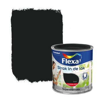 Flexa Strak in de Lak hoogglans zwart 250 ml is een hoogglans aflak op terpentinebasis die je zowel binnen als buiten kunt gebruiken. Je kunt het met de kwast of met de roller aanbrengen op onder andere deuren en kozijnen. Door de extra dekking en goede vloeiing bereik je met Flexa Strak in de Lak eenvoudig en snel een mooi en strak eindresultaat. Flexa Strak in de Lak is krasvast en vergeelt bijna niet. Daardoor maak je met Flexa Strak in de Lak duurzaam en mooi schilderwerk.