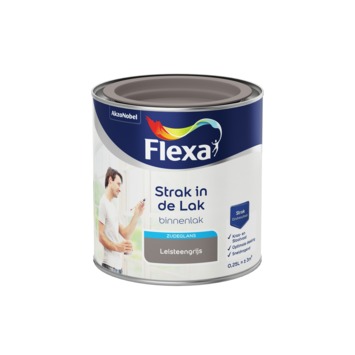 Flexa Strak in de lak voor binnen leisteengrijs zijdeglans 250 ml is een zijdeglans aflak op waterbasis die je binnen kunt gebruiken. Je kunt het met de kwast of met de roller aanbrengen op onder andere deuren en kozijnen. Doordat de lak sneldrogend is kan je het snel overschilderen. Ook is de lak geurarm en vergeelt niet. Door de goede dekking en krasvastheid krijg je met Flexa Strak in de lak eenvoudig en snel een mooi en langdurig eindresultaat.