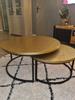 Ik had in een woonwinkel mooie ronde salontafeltjes gezien met goudkleurig metaalblad en zwarte pootjes. Maar die zijn erg duur. Dus ik dacht: ik kan misschien ook mijn huidige ronde zwarte (mango)houtentafeltjes een soortgelijke look geven. Deze lak dekt erg goed, dat had ik niet verwacht aangezien het op zwart aangebracht werd. Uiteraard wel eerst goed geschuurd en ontvet. Na een uur een tweede laagje aangebracht. Ben blij met het resultaat! Toch dezelfde look maar dan veel voordeliger.