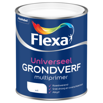 Flexa universele multiprimer wit 750 ml is geschikt als hechtlaag voor diverse ondergronden zowel binnen als buiten. Het hecht uitstekend en is prima roestwerend waardoor je het op veel verschillende ondergronden kunt toepassen. Denk bijvoorbeeld aan hout, harde kunststoffen, geglazuurde tegels, bestaand schilderwerk, ferro metalen zoals ijzer en staal en non-ferro metalen zoals koper en zink. Flexa multiprimer droogt zeer snel waardoor je weinig last hebt van inwaaiend stof in je net aangebrachte primerlaag. Dit draagt bij aan een strak eindresultaat van je klus. Je kunt na droging de Flexa universele multiprimer met elke gewenste terpentine- of waterverdunbare Flexa aflak afwerken.