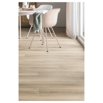 De Flexxfloors Click Deluxe PVC vloer in Pantanal heeft een mooie rustige wit-geoliede lichtbruine kleur, een V-groef aan alle zijden en een fijne matte afwerking met voelbare houtstructuur waardoor de vloer tot leven komt. Deze voelbare structuur zorgt ervoor dat deze PVC click vloer tot leven komt en de beleving van een echt houten plank extra wordt benadrukt. Flexxfloors Click Deluxe is niet te onderscheiden van een echte houten vloer; elke plank is verschillend en geeft een zacht en warm gevoel aan je voeten. De RCB (Rigid Composit Board) drager maakt de vloer extreem stabiel en waterbestendig. De vloer heeft een sterke beschermlaag waardoor deze geschikt is voor intensief gebruik en alle ruimtes in je huis, inclusief vochtige ruimtes. Deze vloer is doorzonwoning-geschikt en kan ook in ruimtes gelegd worden waar direct zonlicht invalt. De vloer kun je toepassen in combinatie met vloerverwarming op basis van warmwater tot max. 28 graden. Je kunt de vloer eenvoudig zelf leggen dankzij het Click systeem, verlijmen van de vloer is niet nodig. Let hierbij op dat je de kopse kanten met een aanslagblok vast slaat. De vloeren hebben een V-groef aan alle zijden. Flexxfloors Click Deluxe is ook te gebruiken in combinatie met Flexxstairs traprenovatie!