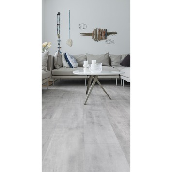 De Flexxfloors Click Deluxe PVC tegelvloer in Arctic heeft het uiterlijk van een grijze betonvloer, een V-groef aan alle zijden en een mooie matte afwerking met een verfijnde, voelbare betonstructuur. Deze voelbare structuur zorgt ervoor dat deze pvc click vloer tot leven komt en de beleving van een echt betonnen vloer extra wordt benadrukt. Flexxfloors Click Deluxe is niet te onderscheiden van echte vloertegels; elke tegel is verschillend en geeft een zacht en warm gevoel aan je voeten. De RCB (Rigid Composit Board) drager maakt de vloer extreem stabiel en waterbestendig. De vloer heeft een sterke beschermlaag waardoor deze geschikt is voor intensief gebruik en alle ruimtes in je huis, inclusief vochtige ruimtes. Deze vloer is doorzonwoning-geschikt en kan ook in ruimtes gelegd worden waar direct zonlicht invalt. De vloer kun je toepassen in combinatie met vloerverwarming op basis van warmwater tot max. 28 graden. Je kunt de vloer eenvoudig zelf leggen dankzij het Click systeem, verlijmen van de vloer is niet nodig. Let hierbij op dat je de kopse kanten met een aanslagblok vast slaat. De vloeren hebben een V-groef aan alle zijden. Flexxfloors Click Deluxe is ook te gebruiken in combinatie met Flexxstairs traprenovatie!