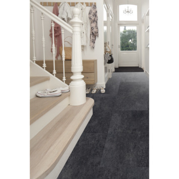 De Stick De Deluxe Tegel Natuursteen Zwart is een nieuwe ontwikkeling binnen de Flexxfloors Stick Deluxe collectie. Deze is kwalitatief de meest hoogwaardige binnen het Flexxfloors Stick assortiment. De natuursteen zwarte tegellook geeft uw kamer een prachtige chique uitstraling. Dit decor is daardoor zeer geschikt voor ruimtes in huis die een bijzondere look vragen zoals de huiskamer, hal, slaapkamer, keuken en badkamer. Let op: de vloertemperatuur mag na het leggen niet hoger dan 28°C worden, gebruik Flexxfloors Stick Deluxe daarom niet in combinatie met direct zonlicht. Flexxfloors Stick is ook te gebruiken in combinatie met Flexxstairs traprenovatie!