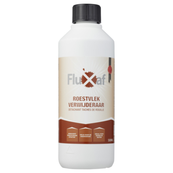 Met Fluxaf Roestvlek verwijderaar 500 ml pak je hardnekkige roestvlekken aan op oppervlakken zoals steen, metaal of kunststof. Denk aan plekken op je vloer, tuinpad of metalen onderdelen die door vocht en tijd zijn gaan roesten. Deze vloeistof maakt de vlekken los zonder het oppervlak te beschadigen.