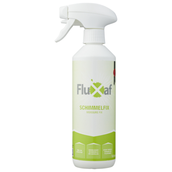Met Fluxaf Schimmelfix schimmelverwijderaar 500 ml verwijder je zwarte aanslag en schimmelplekken op een eenvoudige manier. Deze spray gebruik je op plaatsen waar snel vocht blijft hangen, zoals in de badkamer, keuken, douche of kelder. Ook in een sauna, toilet, zwembad, garage of schuur werkt dit middel goed.