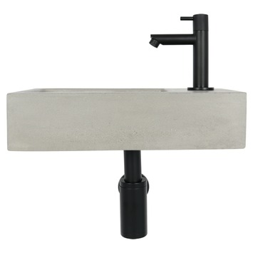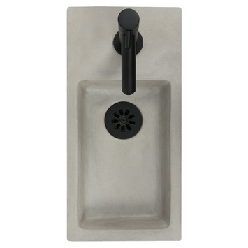 Mooi stoer cementkleur fontein met zwartekraantje.