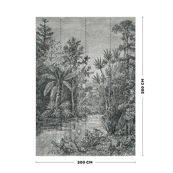 Met het PVC vrije Fotobehang Jungle zwart - wit (105411) van Art for the home maak je van een saaie muur in je kamer een echte eyecatcher. Dit trendy zwart-wit jungle behang is gedrukt op vliesbehang. Het wordt geleverd in 4 banen van 50cm. Vliesbehang breng je heel gemakkelijk aan en is ook gemakkelijk te verwijderen, zonder daar een behangtafel of afstomer bij nodig te hebben. Je lijmt eenvoudig de muur in en het behang kan worden geplakt. Voor het beste resultaat dienen de te beplakken oppervlakken droog, vlak en egaal van kleur te zijn. Kortom, kies voor het Fotobehang Jungle zwart - wit (105411) wanneer je op zoek bent naar een gemakkelijke en snelle manier om jouw kamer een nieuwe uitstraling te geven volgens de laatste woontrends. Dit behang is alleen online en via de zuil in de bouwmarkt te bestellen.