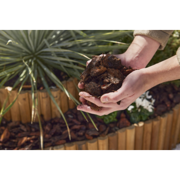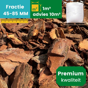Franse Boomschors, afkomstig van de Franse pijnboom (Pinus Maritima), heeft een mooie roodbruine kleur en is een duurzame keuze voor je tuin. De schors gaat 5 à 6 jaar mee en biedt praktische voordelen zoals het werpen van onkruid. Dankzij de harde structuur is het een uitstekende natuurlijke onkruidbestrijder, vooral in combinatie met anti-worteldoeken.