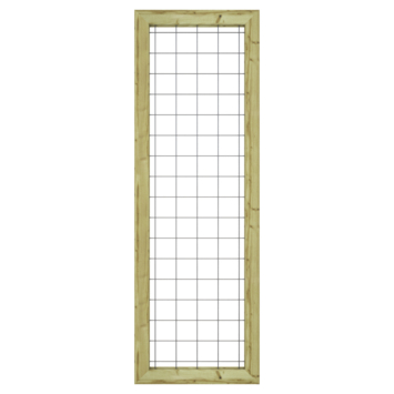 Het gaasscherm vuren 90 x 180 cm is een gaasscherm met een vurenhouten omlijsting. Het scherm is 90 bij 180 centimeter en heeft een maaswijdte van 10 bij 10 centimeter. Het gaasscherm is uitermate geschikt als afscheiding van je tuin. De vurenhouten omlijsting is geïmpregneerd voor een langere levensduur.