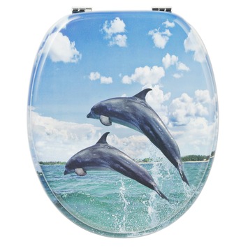 De Galaxy toiletbril Dolfijnen is een mooie zitting voor op je toilet. De zitting is gemaakt van MDF. Het design geeft daarnaast een fraai effect aan de bril. Deze Galaxy toiletbril wordt geleverd inclusief scharnieren en montageset. Kortom, een mooie opvallende zitting voor het toilet met de Galaxy toiletbril.