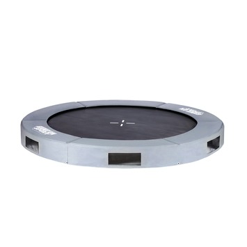 De robuuste Game on Sport Black Line ingraaf trampoline heeft een doorsnede van 244 cm. De specificaties zijn: max. gewicht 120 kg, 48 conische gold verzinkte veren met een lengte van 16,5 cm, dubbel gegalvaniseerde frame (3 poten) hoogte 23 cm, 32 cm breed PVC randkussen gevuld met 20 mm impact resistant foam, een hoge kwaliteit springmat met het Game on Sport beeldmerk en een gebruiksaanwijzing met sprongtechnieken. Deze trampoline is ook verkrijgbaar met een doorsnede van 305 cm.
