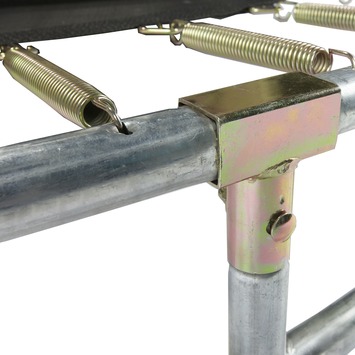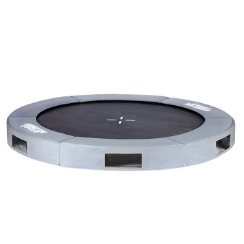 De robuuste Game on Sport Black Line ingraaf trampoline heeft een doorsnede van 305 cm. De specificaties zijn: max. gewicht 120 kg, 64 conische gold verzinkte veren met een lengte van 16,5 cm, dubbel gegalvaniseerde frame (4 poten) hoogte 23 cm, 32 cm breed PVC randkussen gevuld met 20 mm impact resistant foam, een hoge kwaliteit springmat met het Game on Sport beeldmerk en een gebruiksaanwijzing met sprongtechnieken. Deze trampoline is ook verkrijgbaar met een doorsnede van 305 cm.
