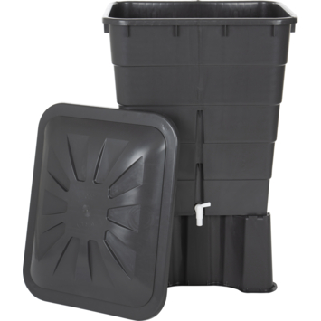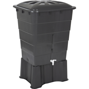 Deze praktische Garantia Regenton rechthoekig grijs 300 Liter heeft zoals de naam al zegt een handige vierkantige vorm en een inhoud van maar liefst 300 liter. Daar kun je aardig wat planten mee goedkoop water geven. De ton heeft een kindveilige deksel en een witte aftapkraan die je ook op een Gardena aan kunt sluiten. Deze grijze vierkante regenton is mooi compact en kan gemakkelijk tegen een muur geplaatst worden. De regenton heeft een breedte van 80 centimeter, een hoogte van 92 centimeter en een inhoud van 300 liter. Het materiaal van de waterton is vrijwel onverwoestbaar. Vorst, regen en dergelijke weersomstandigheden hebben geen vat op deze regenton, wel dien je de regenton leeg te maken bij vorstgevaar. Daarnaast bestaat de ton voor 75% uit gerecycled plastic en beschikt over 10 jaar fabrieksgarantie. Plaats voor extra hoogte onder de regenton een regenton voet zodat je gemakkelijk met een emmer het water uit de kraan kan halen.