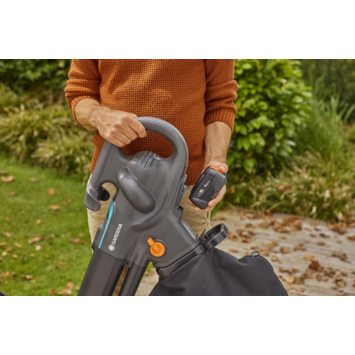 Verjaag moeiteloos bladeren en afval uit je tuin met de PowerJet Collect Blower Vacuum van GARDENA. Dit snoerloze, multifunctionele gereedschap is gebruiksvriendelijk, ergonomisch en voorzien van handige functies. Het wordt aangedreven door een 18V P4A accu (apart verkrijgbaar) voor ongeëvenaarde reinigingskracht en gemak. Krachtige prestaties, eersteklas zuigkracht De lichtgewicht en compacte PowerJet Collect levert echte prestaties in een handzame verpakking. De krachtige borstelloze motor levert een indrukwekkende luchtstroom met regelbare zuigkracht voor snel bladruimen. Het hoogwaardige mulchblad versnippert bladeren voor een betere opslag en effectieve compostering met minder kans op bladschimmel. De hoogwaardige metalen waaier zorgt voor een robuuste levensduur en betrouwbare prestaties. Omni-directioneel wiel Het 360-graden omni-wiel met hoogteverstelling maakt het werken op verschillende oppervlakken moeiteloos en vermindert de belasting. Ideaal voor grotere tuinen, goten, afvoeren of overal waar bladeren en afval kunnen vallen. Moeiteloze bediening met één druk op de knop De PowerJet Collect is ontworpen met het oog op comfort en is voorzien van een schouderriem voor eenvoudige draagbaarheid, terwijl de bediening met één druk op de knop de belasting voor de gebruiker vermindert. Schakel moeiteloos tussen zuig- en blaasfuncties en regel de zuigsnelheid met de intuïtieve knoppen. Activeer moeiteloos de PowerBoost modus voor zware taken zoals hardnekkige natte bladeren. Eenvoudige toegang voor moeiteloos onderhoud Zeg maar dag tegen frustrerende verstoppingen. De onderhoudsklep aan de zijkant geeft gemakkelijk toegang tot de hoogwaardige metalen waaier, waardoor verstoppingen in een paar seconden worden verholpen. De zwaar uitgevoerde, dubbel gevoerde opvangzak is vochtbestendig en ontworpen om gemakkelijk los te maken en te legen. Geen frustratie en geknoei meer door moeilijk te bevestigen zakken met enkele voering. Onderdeel van de POWER FOR ALL ALLIANCE De POWER FOR ALL ALLIANCE is een van de grootste merkoverschrijdende batterijallianties van toonaangevende fabrikanten voor 11 merken en meer dan 100 toepassingen. De accu is daarom compatibel met talloze andere gereedschappen in huis en tuin - wat betekent dat je niet meer voor elk product een accu hoeft te kopen. Je bespaart geld en blijft altijd flexibel! POWER FOR ALL accu en oplader worden apart verkocht. GARDENA biedt 3 jaar garantie na registratie op gardena.com/registration binnen 3 maanden na aankoop. Accu's en opladers (indien verkocht met het product) zijn uitgesloten. Garantievoorwaarden op gardena.com/garantie.