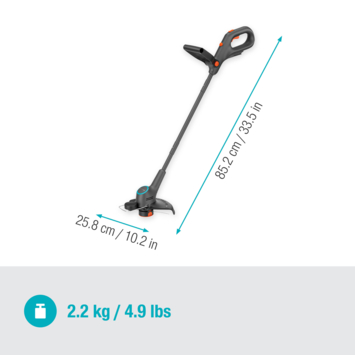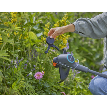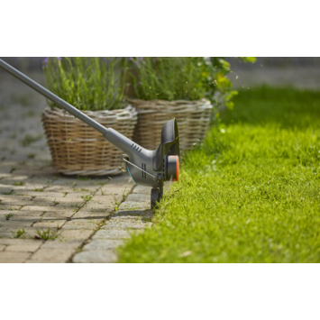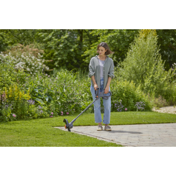 Lichtgewicht, slank en klaar om je gazon netjes af te werken, maak kennis met de GARDENA EasyTrim 25 18V 2in1 accu tuintrimmer. Deze trimmer maakt gebruik van een 18V POWER FOR ALL accu (apart verkrijgbaar), en ondanks het gewicht van slechts 1,7 kg (2,1 kg met accu) heeft deze handtrimmer serieuze snoeikracht met een snijboog van 25 cm en een automatische invoerlijn van 1,6 mm. Lichtgewicht voor snel en eenvoudig transport Lichtgewicht en wendbaar, dit snoerloze gereedschap is gemakkelijk en comfortabel te dragen door zelfs grote tuinen. Ondanks zijn lichte gewicht heeft het toch genoeg trimkracht om gazons van alle soorten en maten aan te pakken, terwijl de verstelbare plantenbescherming je bloemen, bomen en struiken veilig houdt. 2in1 met eenvoudig schakelen tussen trim- en kantmodus Of je nu op zoek bent naar een trimmer voor struiken, heesters, heggen of gras, met de GARDENA EasyTrim is de verzorging van je tuin snel en eenvoudig. Met een simpele druk op de knop en een draaibeweging zet je hem om van de trim- naar de kantmodus. De handgreep met groot bereik maakt het gemakkelijk om bij lastige hoekjes en gaatjes te komen, terwijl het lichte gewicht ervoor zorgt dat het nooit inspannend wordt. En met de trekkerbediende automatische eenlijns-toevoer wordt het trimmen nooit onderbroken door gebroken lijnen. Kantenwiel voor elke keer een rechte lijn Een mooie snoeibeurt kan worden ondermijnd door ongelijke randen. Gelukkig heeft de GARDENA EasyTrim een kantwiel dat over de grond gerold kan worden voor een nette en gelijkmatige rand. Bovendien kan het randwiel ook langs schuttingen en muren worden gerold om de lijn te beschermen tegen breuk. Ergonomisch ontwerp voor trimmen op jouw manier Zeg maar dag tegen de pijntjes en kwaaltjes die het trimmen in de tuin vaak met zich meebrengt. De EasyTrim is niet alleen licht en gemakkelijk te hanteren. Hij heeft ook een ergonomisch ontwerp voor optimaal comfort en controle. De verstelbare handgreep zorgt voor maximaal comfort en vermindert overbelasting van de pols. Deel van de P4A ALLIANCE De EasyTrim wordt aangedreven door een 18V oplaadbare POWER FOR ALL accu. Als onderdeel van de P4A ALLIANCE gebruikt deze elektrische tuintrimmer dezelfde 18V accu als een van de meer dan 100 apparaten van 11 merken die deel uitmaken van dezelfde alliantie. Omdat deze volledig uitwisselbaar zijn, kun je een accu van een ander apparaat aansluiten terwijl je EasyTrim accu oplaadt. POWER FOR ALL accu en oplader worden apart verkocht. GARDENA biedt 3 jaar garantie na registratie op gardena.com/registration binnen 3 maanden na aankoop. Batterijen en opladers (indien verkocht met het product) zijn uitgesloten. Garantievoorwaarden op gardena.com/garantie.