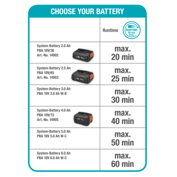 - Perfect voor het snoerloos maaien van kleinere gazons, tot 50 m² op 1 acculading