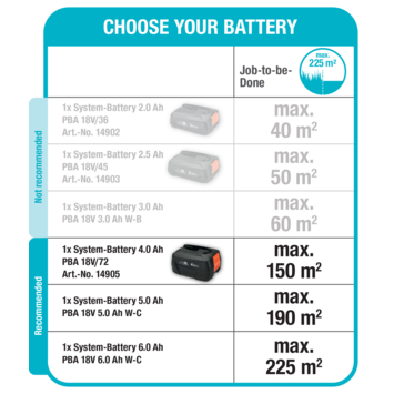 De wendbaarheid van de Accugrasmaaier PowerMax 30/18V in de P4A Gebruiksklare set van GARDENA laat je gemakkelijk alle stukjes gras die je moet maaien bereiken. De compacte grasmaaier blinkt het meeste uit op kleine gazons tot 150 m². Dankzij de comfortabele handgreep en het lage gewicht van de maaier van slechts 8 kg, zijn alle handelingen op het gazon of tijdens het verplaatsen erg makkelijk. De PowerMax 30/18V is bijzonder manoeuvreerbaar en kan zelfs moeilijk bereikbare plekken in de tuin bereiken. Dankzij het dubbel geharde, fijngeslepen DuraEdge-mes en 30 cm breedte, wordt je gazon perfect gemaaid met een prachtig gelijkmatig maairesultaat. Elke grashalm wordt verzameld in de 25 liter opvangbak van de accugrasmaaier. Door de ideale positie van de opvangbak wordt het maaisel effectief verzameld, zodat de trommel volledig van achter tot voor opgevuld wordt. Dat betekent dat je altijd pas de trommel leegt wanneer hij vol is, waarmee je tijd bespaart. De krachtige motor is borstelloos. Hij blijft zeer efficiënt, zelfs na veelvuldig gebruik en garandeert een lange levensduur. Met het ergonomische stuur kan je de maaier makkelijk en moeiteloos bewegen, zelfs na langere tijd. Je kan de accugrasmaaier zelfs met één hand over het gazon bewegen. Je kan de hoogte van het stuur op drie verschillende hoogtes zetten, om hem aan te laten sluiten op jouw lengte. Voordat je begint kan je kiezen hoe kort het gras gemaaid moet worden met de axiale maaihoogteverstelling. Je kan de maaihoogte op drie verschillende posities tussen 35 en 65 mm instellen. Elke grashalm wordt gemaaid, dankzij de laterale maaikammen, zelfs langs muren en randen. Nadat je het gazon hebt gemaaid kan je de praktische vouwfunctie van het stuur gebruiken om de draadloze grasmaaier ruimtebesparend op te slaan. De GARDENA Accugrasmaaier PowerMax 30/18V P4A wordt geleverd als gebruiksklare set met een lader en krachtige 4.0 Ah 18V POWER FOR ALL-accu. De POWER FOR ALL ALLIANCE is een van de grootste merkoverschrijdende accu-allianties van toonaangevende fabrikanten, wiens accu's je kan gebruiken in talrijke apparaten in huis en tuin. Zo bespaar je geld maar blijf je toch flexibel! GARDENA geeft een fabrieksgarantie van 3 jaar op het kwaliteitsproduct na een eenvoudige online registratie. Passion powered by GARDENA. EEN accusysteem voor alle taken in je tuin.