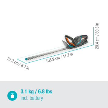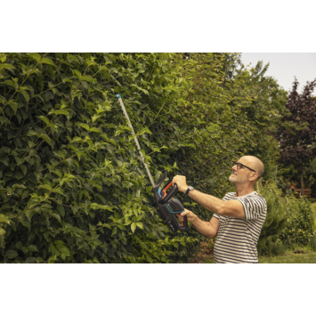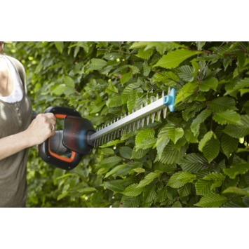 Met de GARDENA Accu-Heggenschaar ComfortCut 60 / 18V P4A snoeit u snel en efficiënt middelgrote heggen zonder het ongemak van een snoer. De krachtige accu biedt een gebruikstijd van maximaal 56 minuten, waarmee u tot 188 vierkante meter heg kunt snoeien. Het ergonomische ontwerp met de ErgoLine-handgreep en de handige LED-indicator maakt het werk comfortabel en zorgt ervoor dat je altijd weet wanneer de accu moet worden opgeladen. Het 60 cm lange mes en de perfecte bladgeometrie maken snoeien moeiteloos, terwijl de accu van de POWER FOR ALL ALLIANCE ook geschikt is voor andere GARDENA gereedschappen, waardoor je flexibeler bent en geld bespaart.