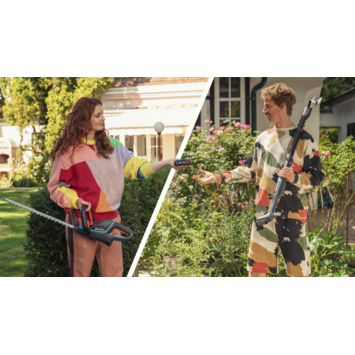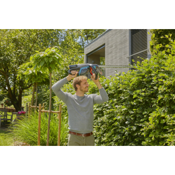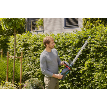 - 18V accu voor 56 minuten snoeiwerk of 188 m² heg