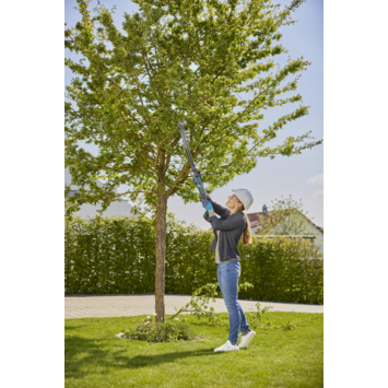 De Accu-takkenschaar EasyCut 110/18V P4A solo van GARDENA helpt je gemakkelijk takken te snoeien in bomen en struiken. Zijn lage gewicht van slechts 1,9 kg maakt hem comfortabel vast te houden tijdens boomverzorging. Je kan takken tot wel 2,5 m hoog bereiken, terwijl je comfortabel op de grond staat. Dankzij de krachtige ondersteuning van de POWER FOR ALL-accu kan je sneden maken zonder veel kracht te gebruiken. De originele GARDENA-messen zijn gemaakt in Duitsland van gehard staal en zorgen voor een nette en soepele snede in vers hout met een diameter tot wel 28 mm. Ze zijn precisiegeslepen en hebben een antikleeflaag, waardoor geknipt materiaal niet aan de smalle schaarkop blijft plakken. De EasyCut is comfortabel in gebruik met een perfecte balans, dankzij de ergonomische handgreep. De geïntegreerde ledindicator in de ergonomische handgreep toont je de laadstatus van de accu. De GARDENA Accu-takkenschaar HighCut 110/18V P4A solo wordt geleverd zonder snellader en krachtige 18V POWER FOR ALL-accu. Je kan elk accusysteem van de POWER FOR ALL ALLIANCE gebruiken. De POWER FOR ALL ALLIANCE is een van de grootste merkoverschrijdende accu-allianties van toonaangevende fabrikanten, wiens accu's je kan gebruiken in talrijke apparaten in huis en tuin. Zo bespaar je geld maar blijf je toch flexibel! Je kan het apparaat ook kopen in combinatie met de heroplaadbare accu als Gebruiksklare set (art. nr. 14772-20). Na een eenvoudige online registratie biedt GARDENA een fabrieksgarantie van 3 jaar op de Accu-takkenschaar. Passion powered by GARDENA. EEN accusysteem voor alle taken in je tuin.