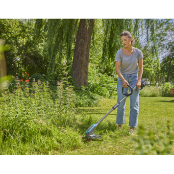 De Gardena PowerTrim accu-grastrimmer wordt geleverd zonder de 18V POWER FOR ALL accu. Deze accu maakt deel uit van de POWER FOR ALL-alliantie, een van de grootste merkoverschrijdende accu-allianties met toonaangevende fabrikanten van 11 merken en meer dan honderd toepassingen. Hierdoor kun je dezelfde accu gebruiken voor verschillende gereedschappen voor huis en tuin, zonder dat je voor elk apparaat een aparte accu hoeft aan te schaffen. De krachtige motor en de stevige 2 mm draad zorgen voor een krachtige en gelijkmatige snede, zelfs bij de meest hardnekkige gazons, terwijl het lichte ontwerp het gebruiksgemak verhoogt. Met PowerBoost kun je op aanvraag maximale prestaties leveren. De telescopische steel maakt het mogelijk om moeilijk bereikbare plekken nauwkeurig te trimmen, terwijl de verstelbare beschermbeugel je planten beschermt. De steel kan 360 graden draaien en over de gehele lengte van de buis bewegen voor een comfortabele grip en minder vermoeidheid. Omdat hij op een accu werkt, hoef je je geen zorgen te maken over hinderlijke kabels. De PowerTrim is uitgerust met een robuuste 2 mm draad om het risico op breuk te verminderen en een ononderbroken snede te garanderen. De spoelvoeding maakt het snel verlengen van de draad mogelijk - de LED-indicator waarschuwt je bij een korte draad -, gemakkelijk en zonder verspilling, terwijl de draadbescherming klitten en blokkades voorkomt. Het LED-scherm heeft ook een indicator voor de laadstatus van de accu, zodat je weet wanneer het tijd is om op te laden. Het plastic dat in de PowerTrim wordt gebruikt, bestaat voor meer dan 50% uit gerecycled post-consumer plastic. Gardena biedt een garantie van 3 jaar na registratie op gardena.com/registration binnen 3 maanden na aankoop. Garantievoorwaarden zijn te vinden op gardena.com/warranty.
