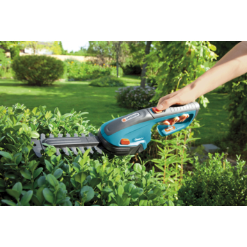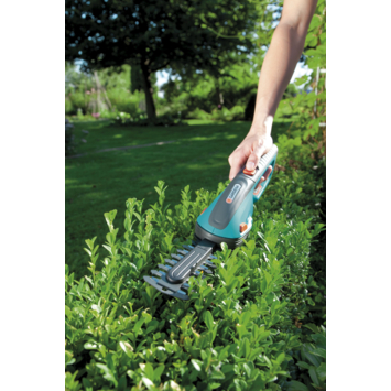 De Gardena accu gras- en buxusschaar ClassicCut set is de ideale gras- en buxusschaar. Omdat de schaar over een high-performance Lithium-lon 3.6 volt accu beschikt, ben je verlost van die vervelende kabels tijdens het snoeien. Na 360 minuten oplaadtijd kun je 45 minuten ongestoord knippen en snoeien. Een simpele blik op de LED-display vertelt je hoe lang je nog kunt doorgaan. De grasschaar is uitgerust met twee verschillende messen: een gras- en buxusmes met 8 centimeter snijbreedte en een struikmes met een snijlengte van 12,5 centimeter. Daardoor kun je de grasschaar gebruiken voor zowel het knippen van graskanten en het in vorm snoeien van buxussen of andere struiken. Voor het samenstellen van jouw droomtuin is de Gardena gras- en buxusschaar dus ideaal. De ergonomisch gevormde handgrepen zorgen ervoor dat de schaar heerlijk in de hand ligt.