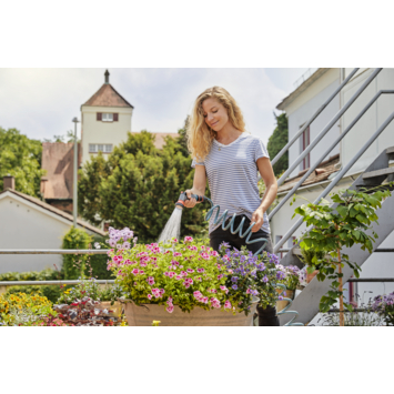 De Gardena balkonbroes heeft een handige en compacte vorm. Door de lagere waterstroom heeft de broes een zacht straal, waardoor het mogelijk is om planten te besproeien zonder ze te beschadigen. Het comfortabele handvat met zachte kunststofonderdelen zorgt ervoor dat de balkonbroes prettig is in gebruik. De waterstroom kan traploos worden aangepast. De geïntegreerde vergrendeling op de triggerknop is bijzonder ergonomisch en voorkomt vermoeidheid in je handen.